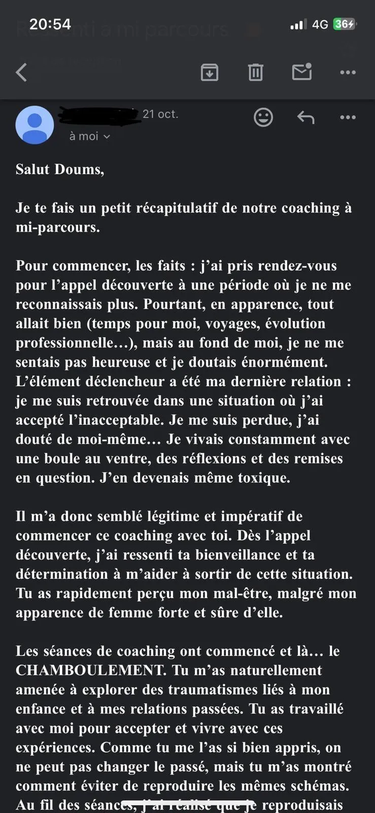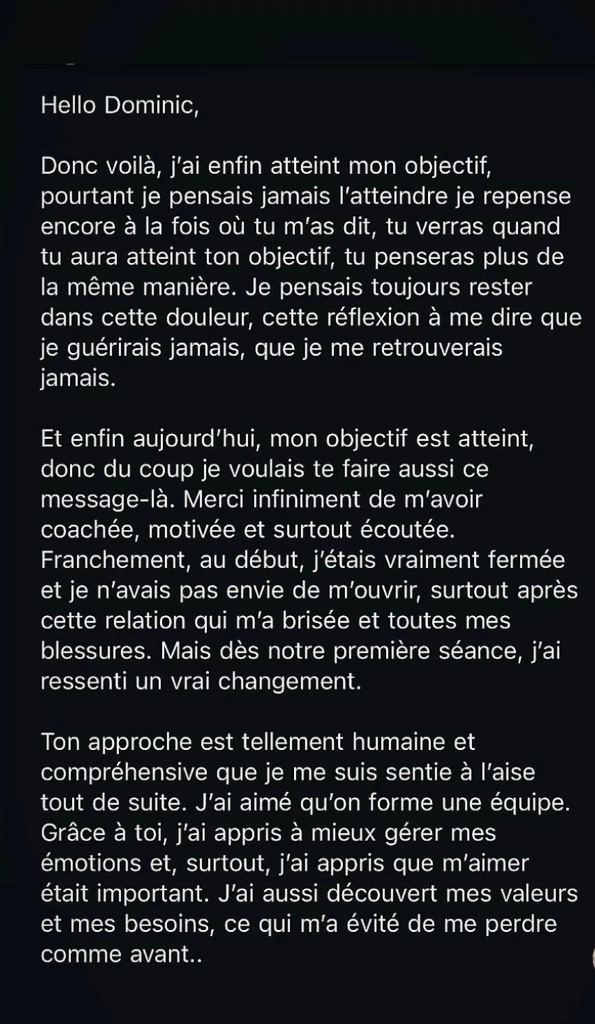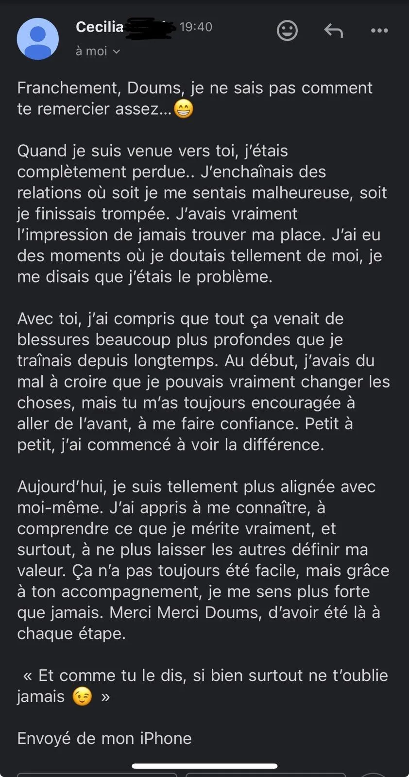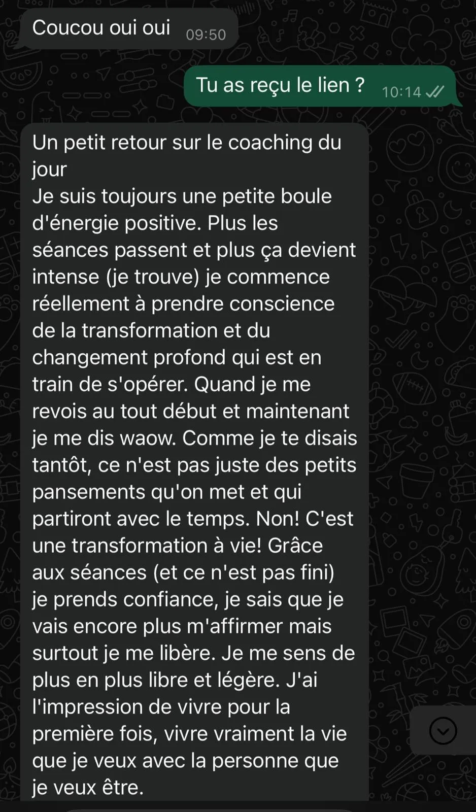 Voici quelques témoignages de personnes que j’ai eu la chance d’accompagner sur leur chemin de transformation.
